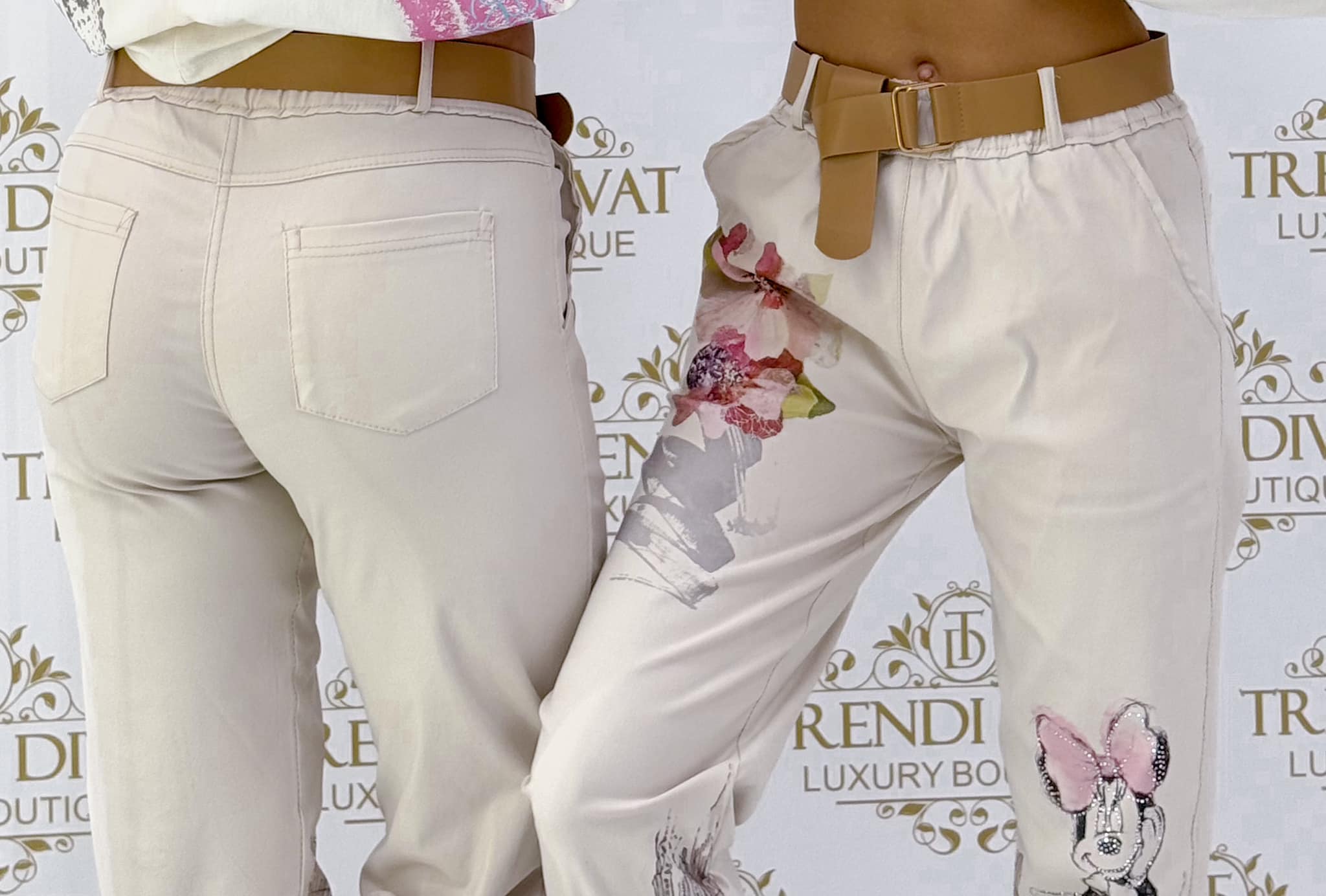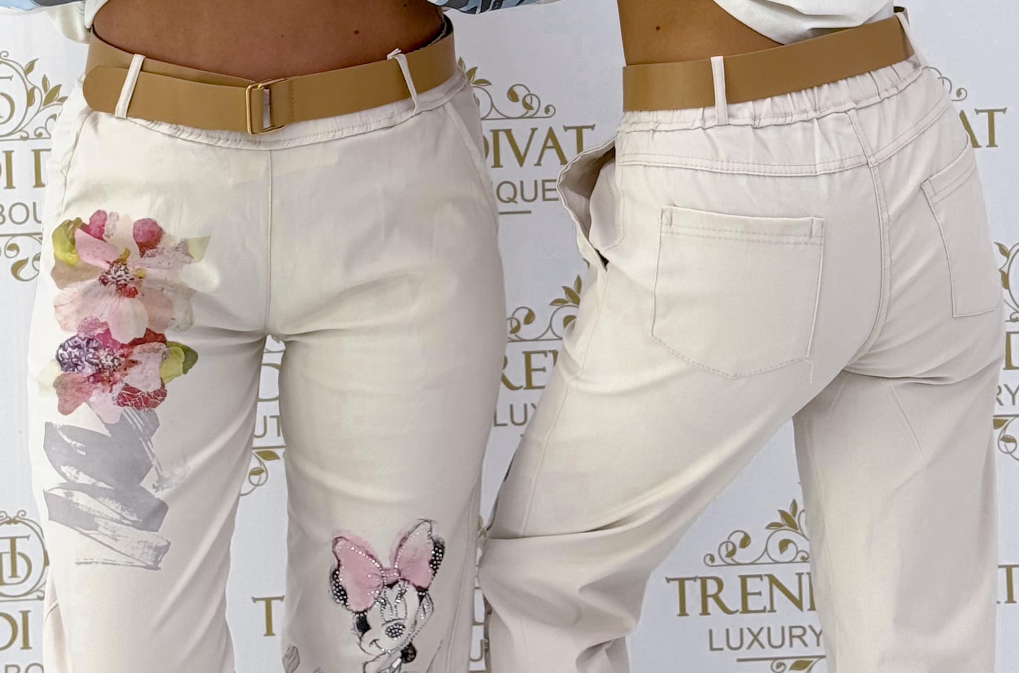 Be the first to review “Pants in elastic fabric with patterned stones, gift belt”