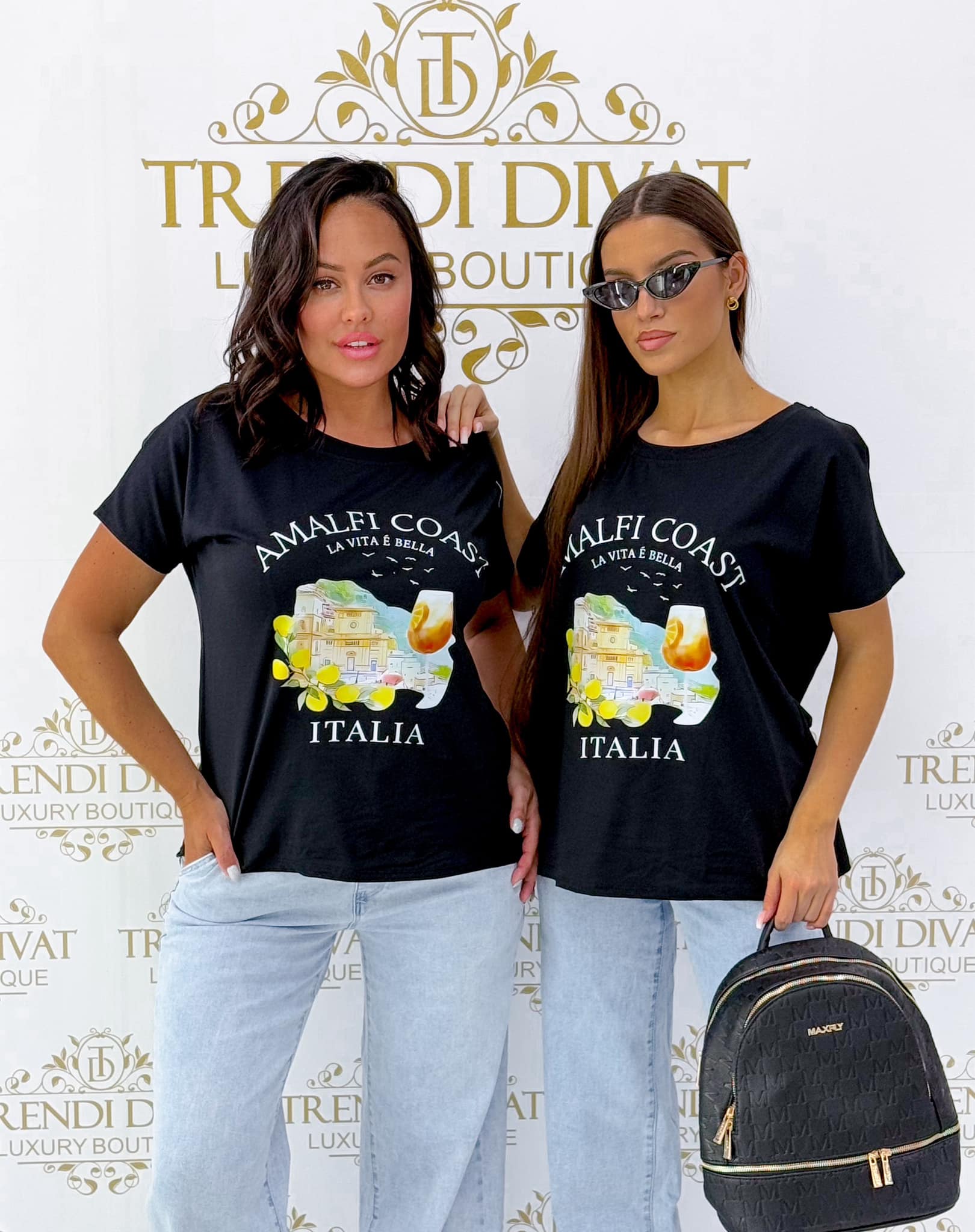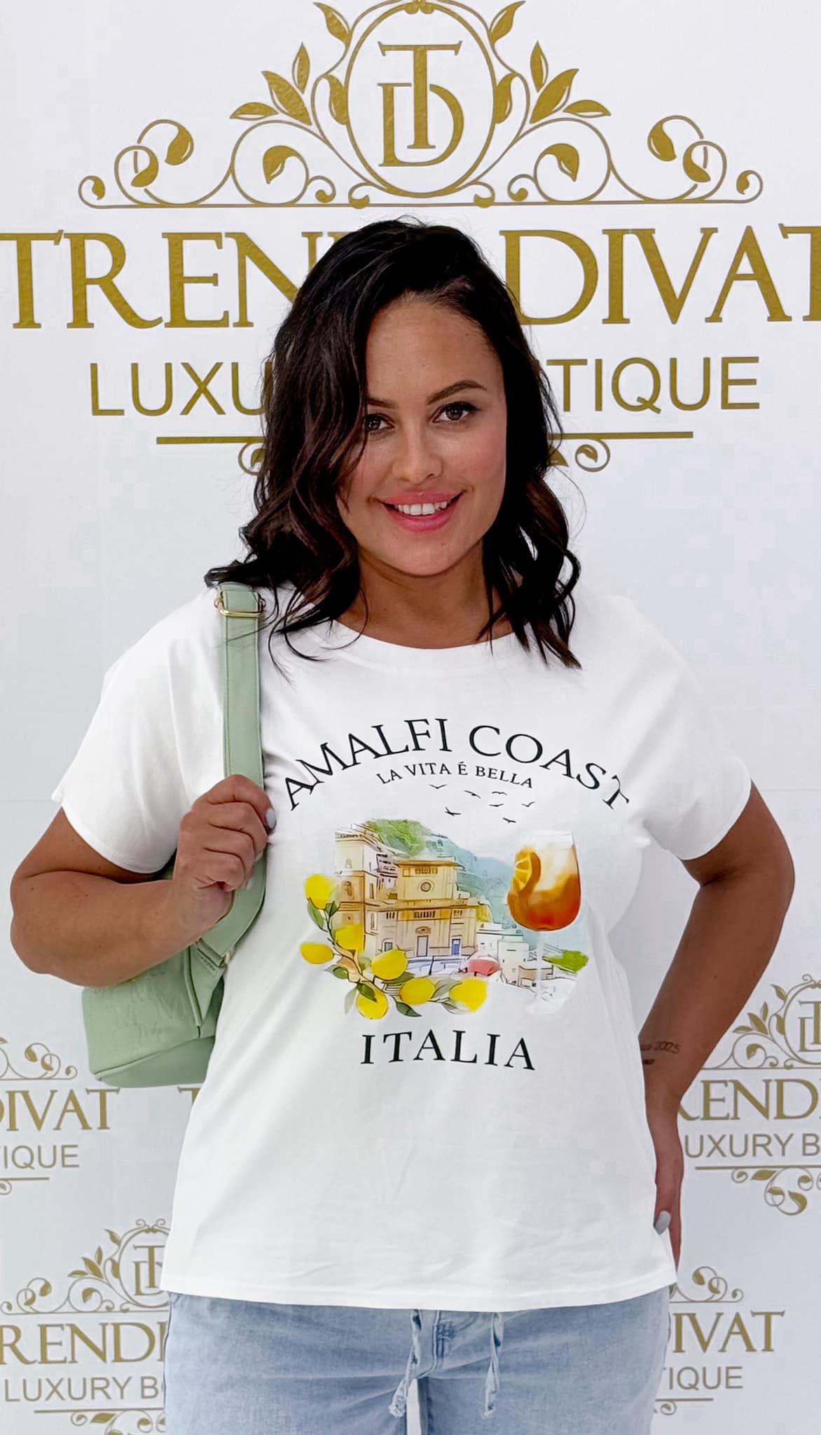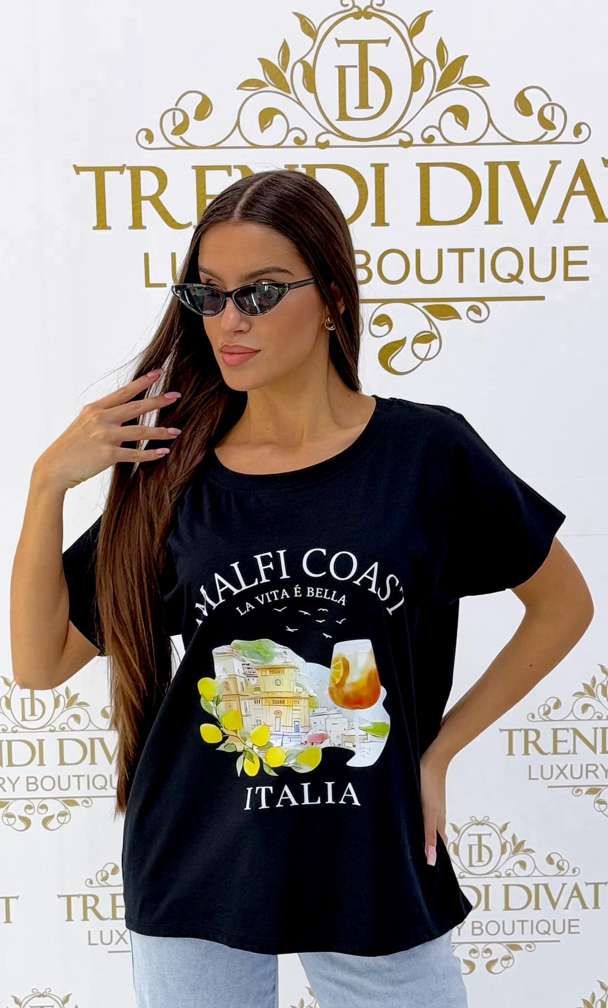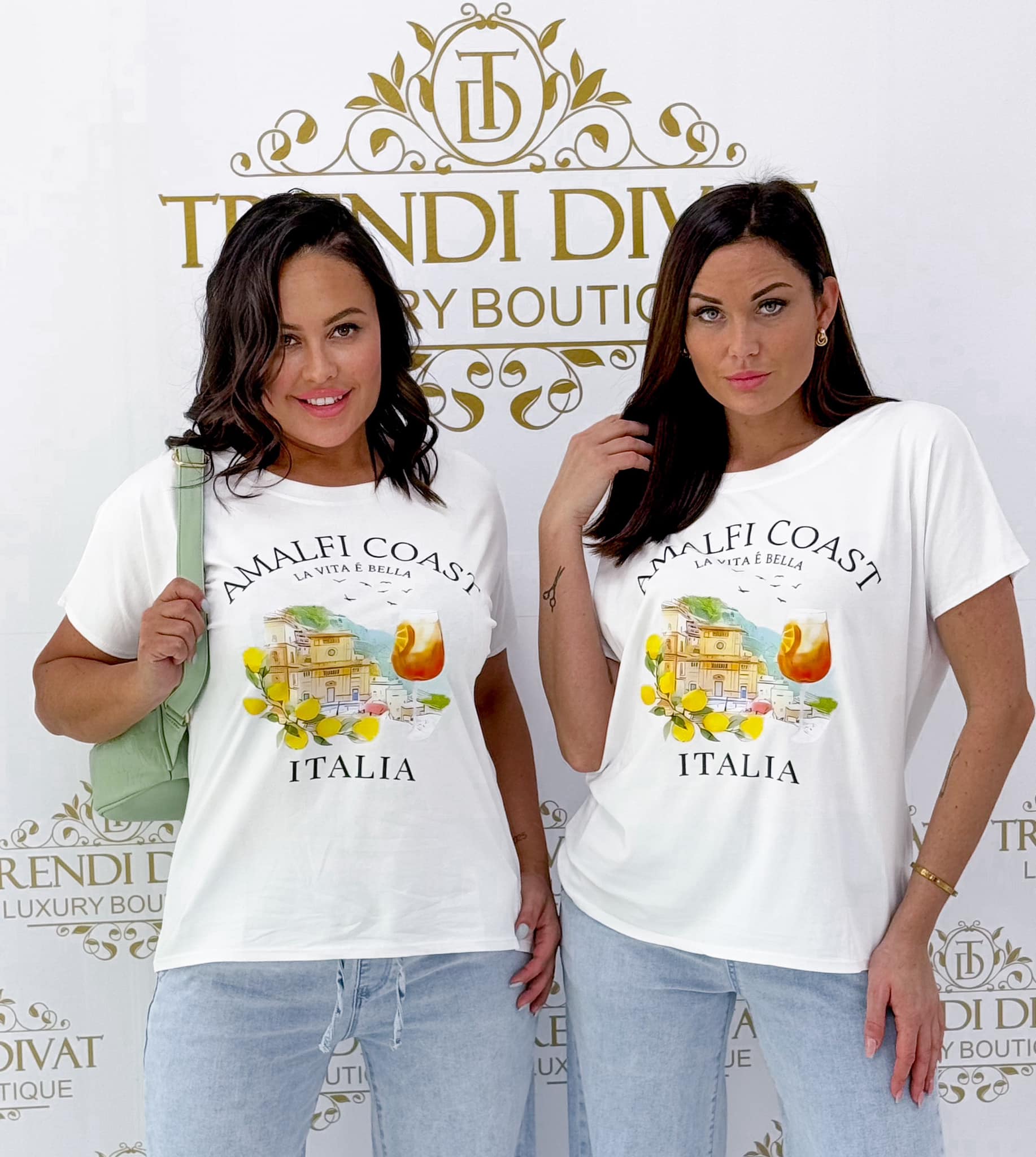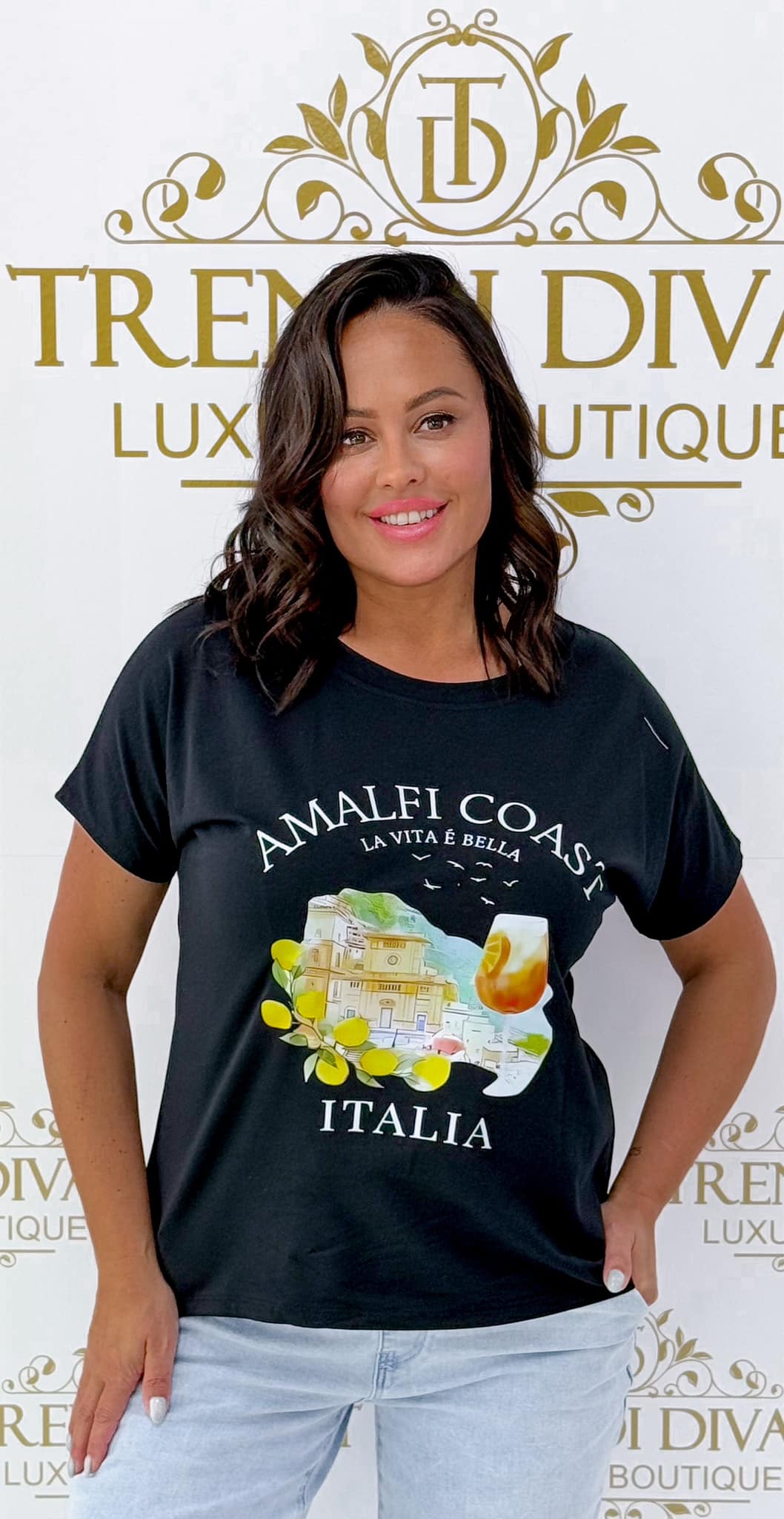 Relaxed fit, shorter front, ” Amalfi Coast Italia” T-shirt