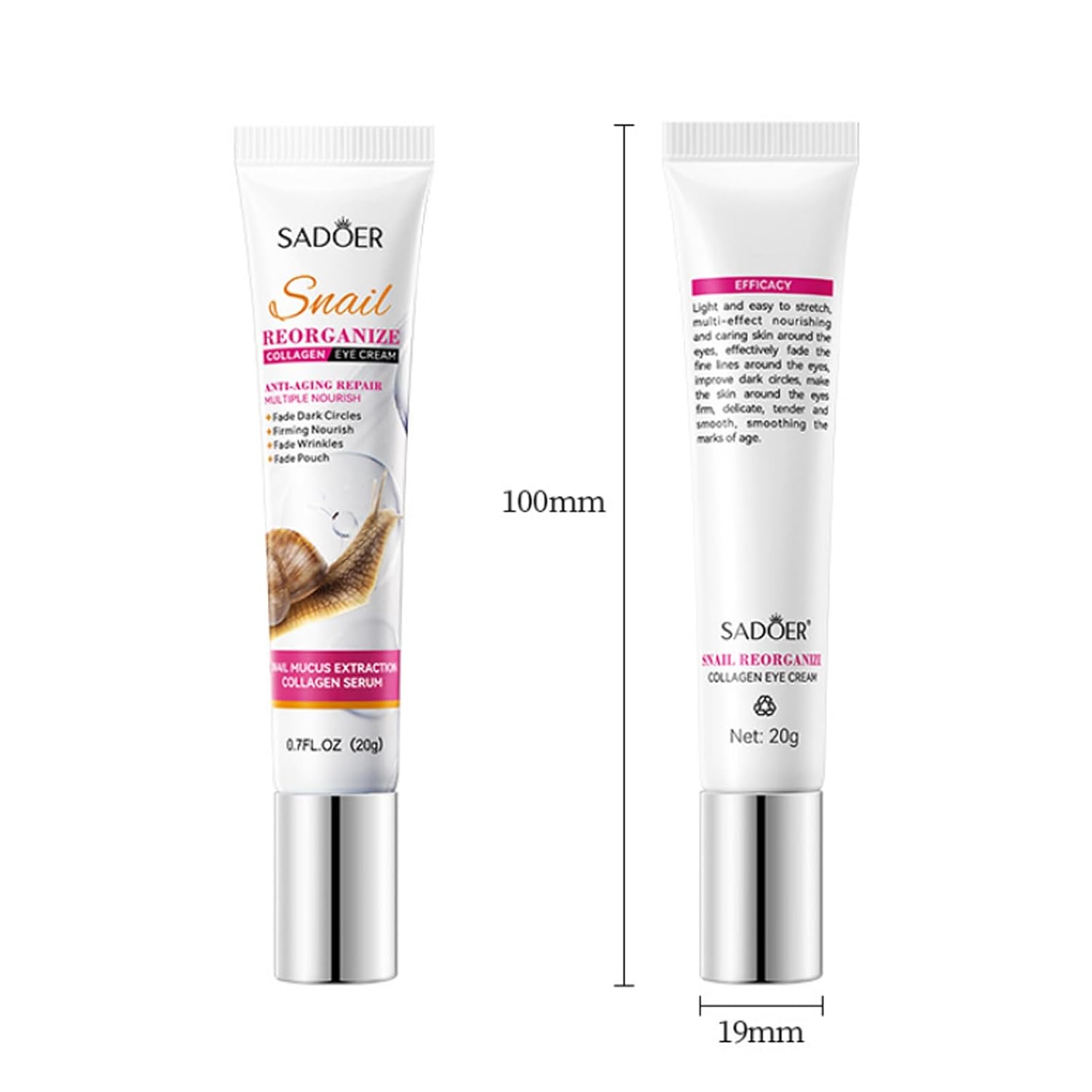 - Snail Eye Repair Cream: Snail Eye Repair Cream is specifically formulated to treat common eye problems caused by night time and long working hours. Its main function is to restore the skin’s surface, moisturize the skin, remove dark circles and eye bags, tighten fine lines and say goodbye to puffy eyes.