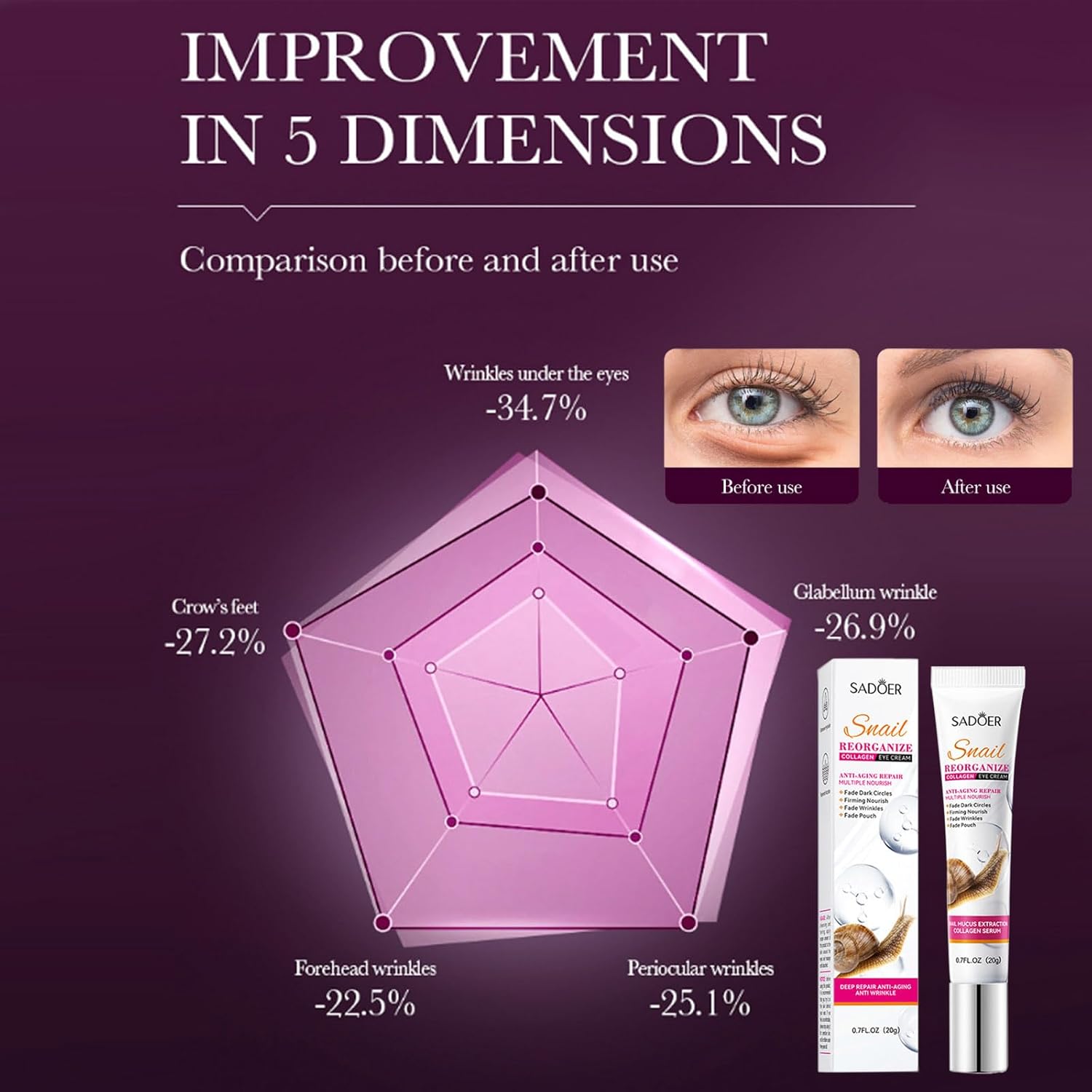 - 【Richens the skin around the eyes】 Our eye contour cream contains snail fluid filtrate and hydrolyzed collagen with zinc to provide powerful nourishment, reduce the appearance of wrinkles, firm and hydrate dry and aging skin, and make the skin around the eyes supple.