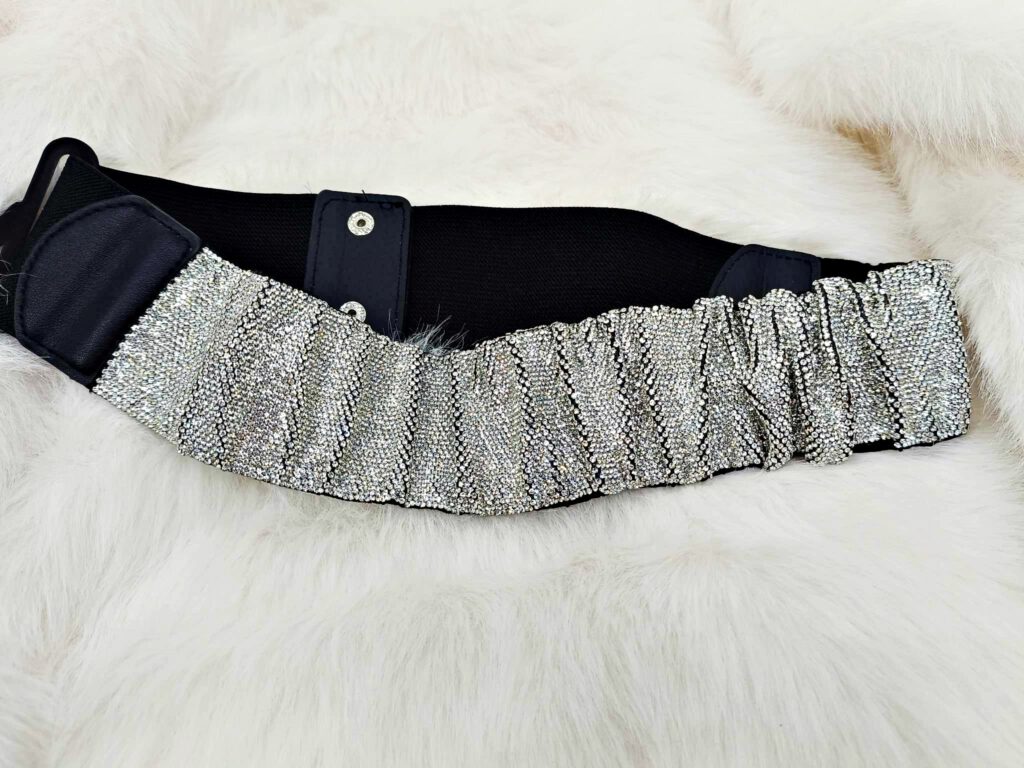 Ezüst színű kövekkel kirakott masnis, gumis öv