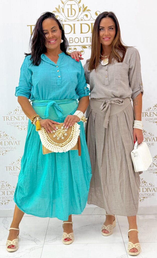 Passzés derekú lenvászon szoknya, megkötős övvel