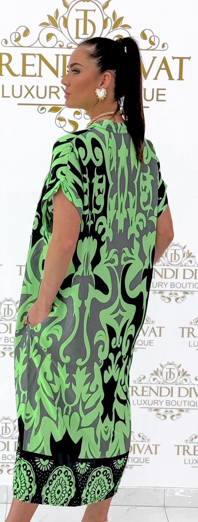 Be the first to review “Álló galléros, lenge vászon anyagú, zsebes, mintás maxi tunika”