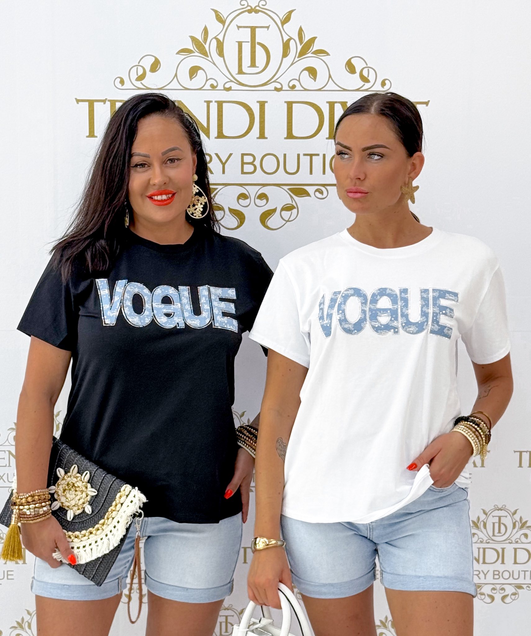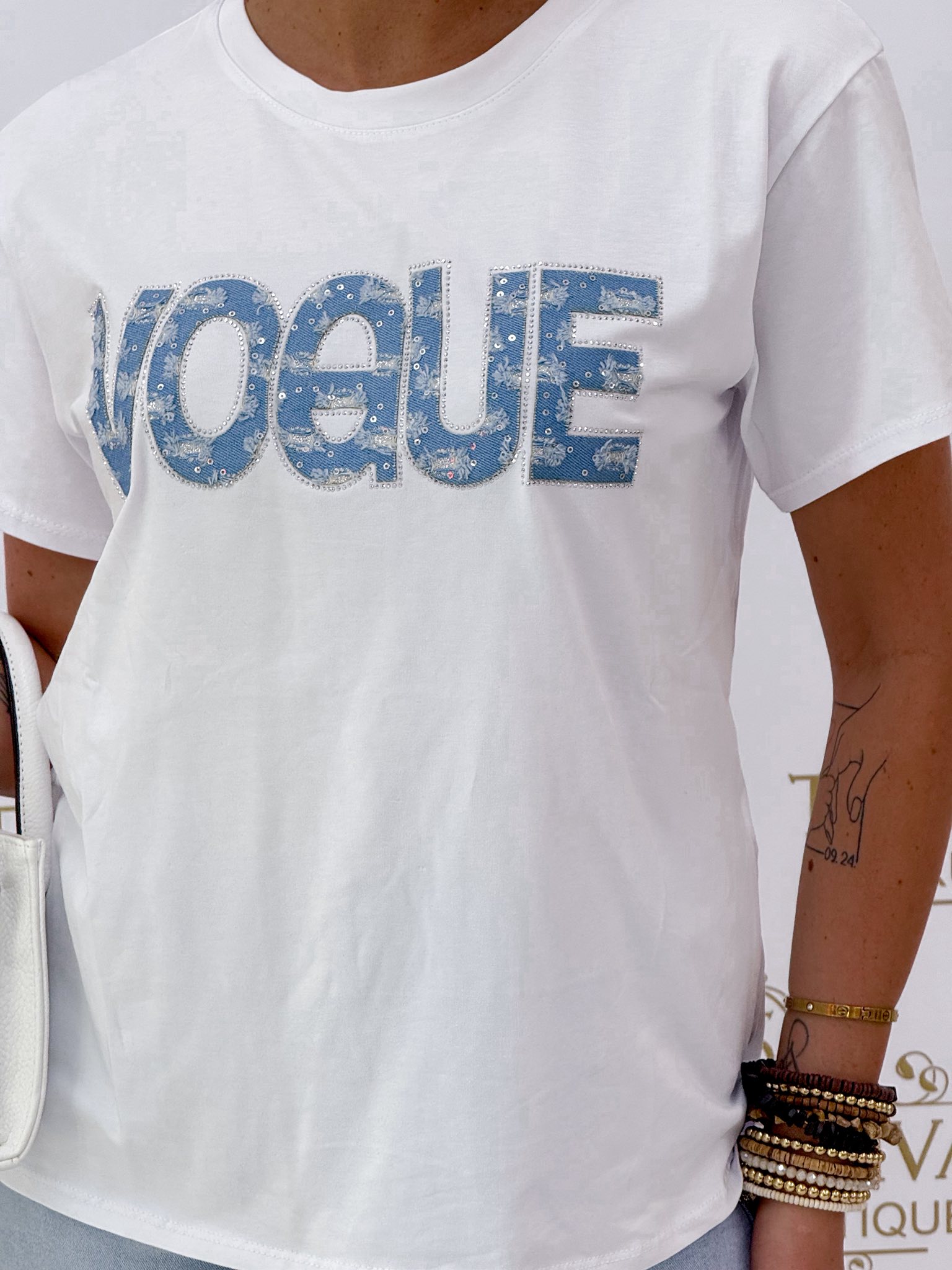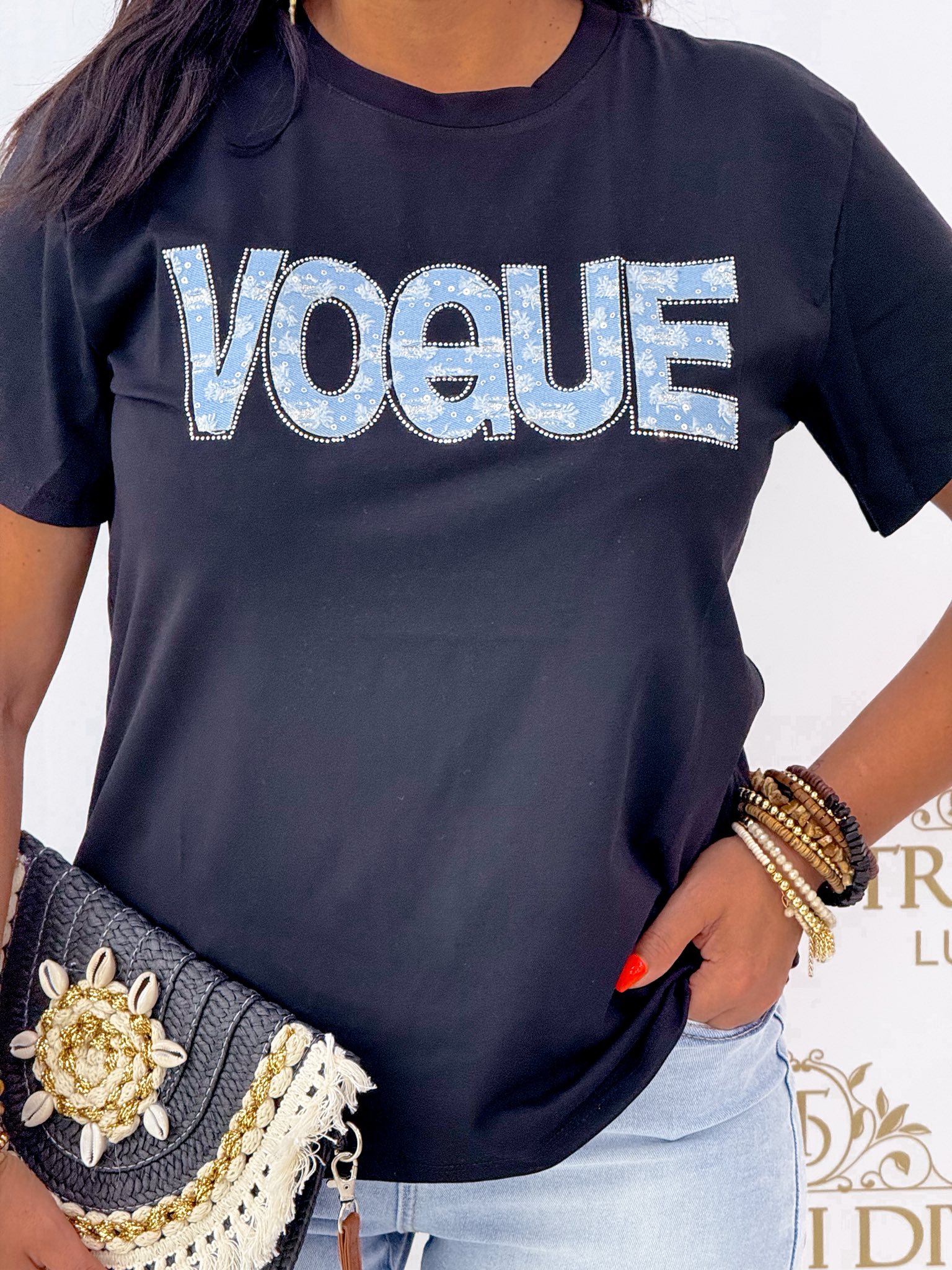 Farmer betétes “Vogue” feliratos, kövekkel díszített póló