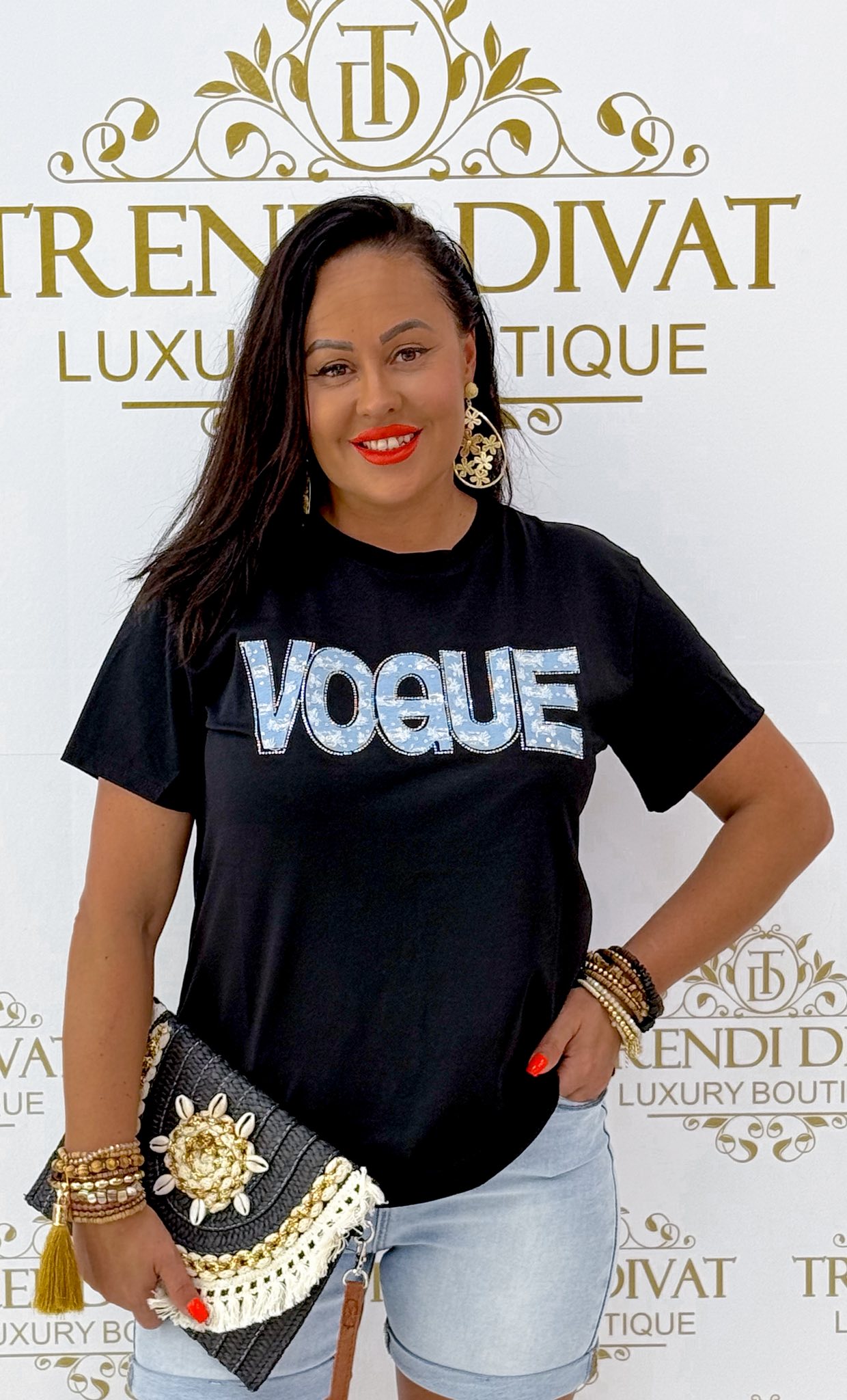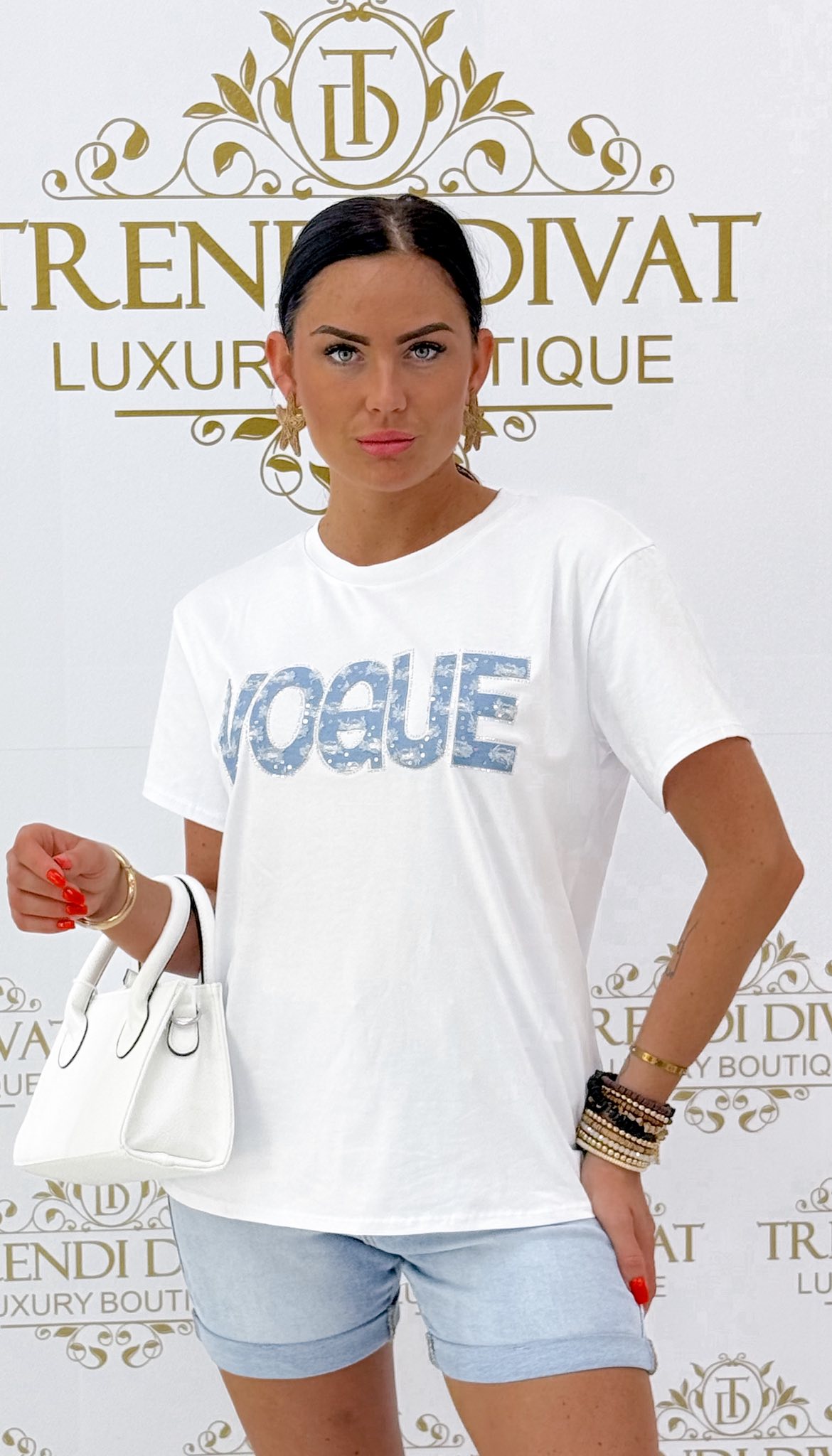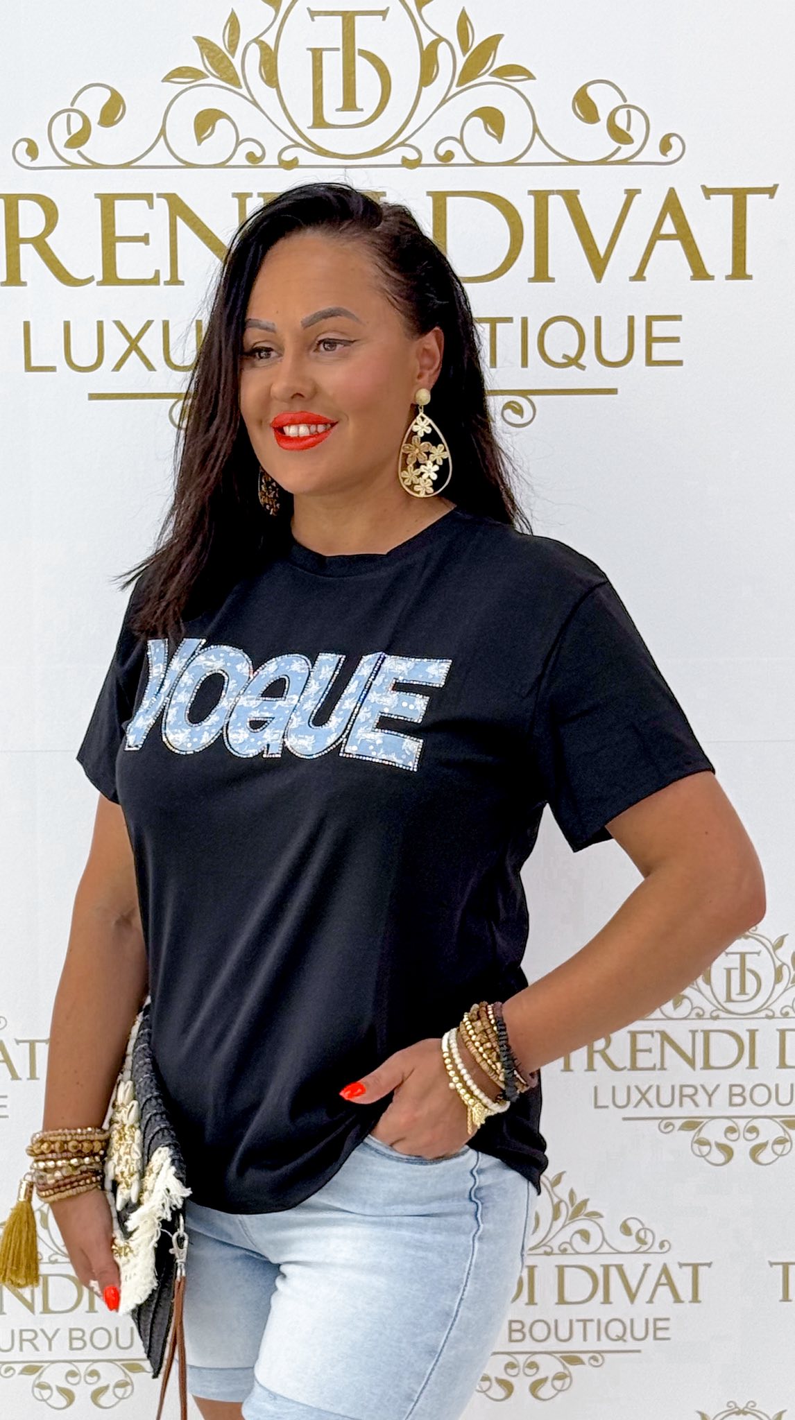 Farmer betétes “Vogue” feliratos, kövekkel díszített póló