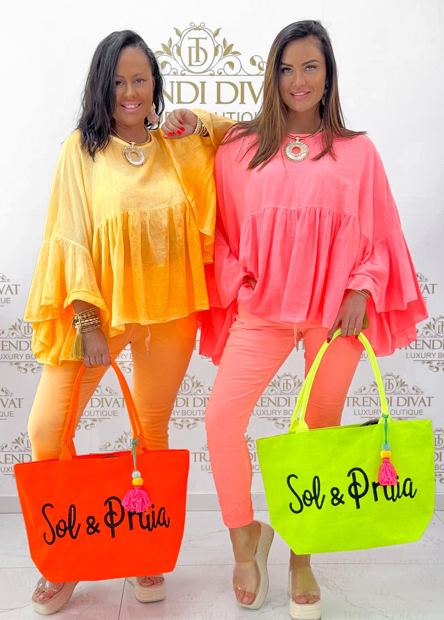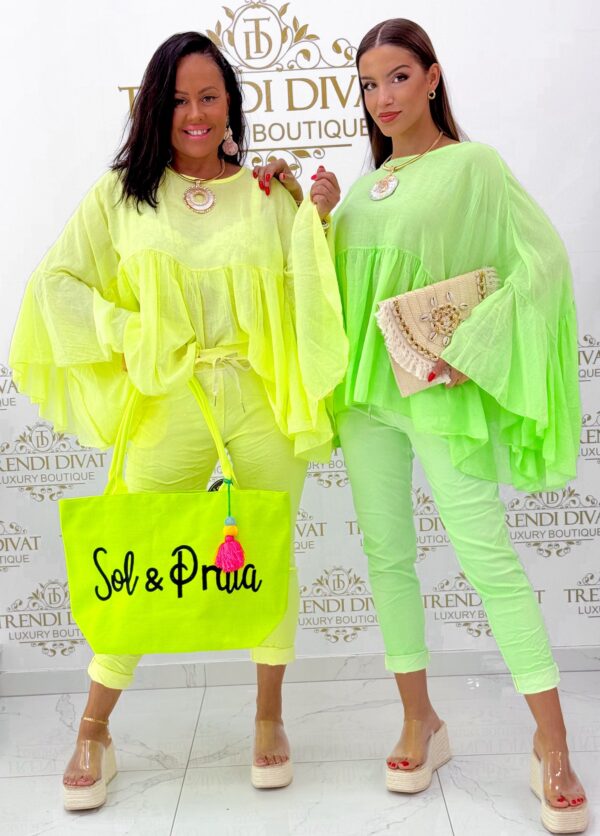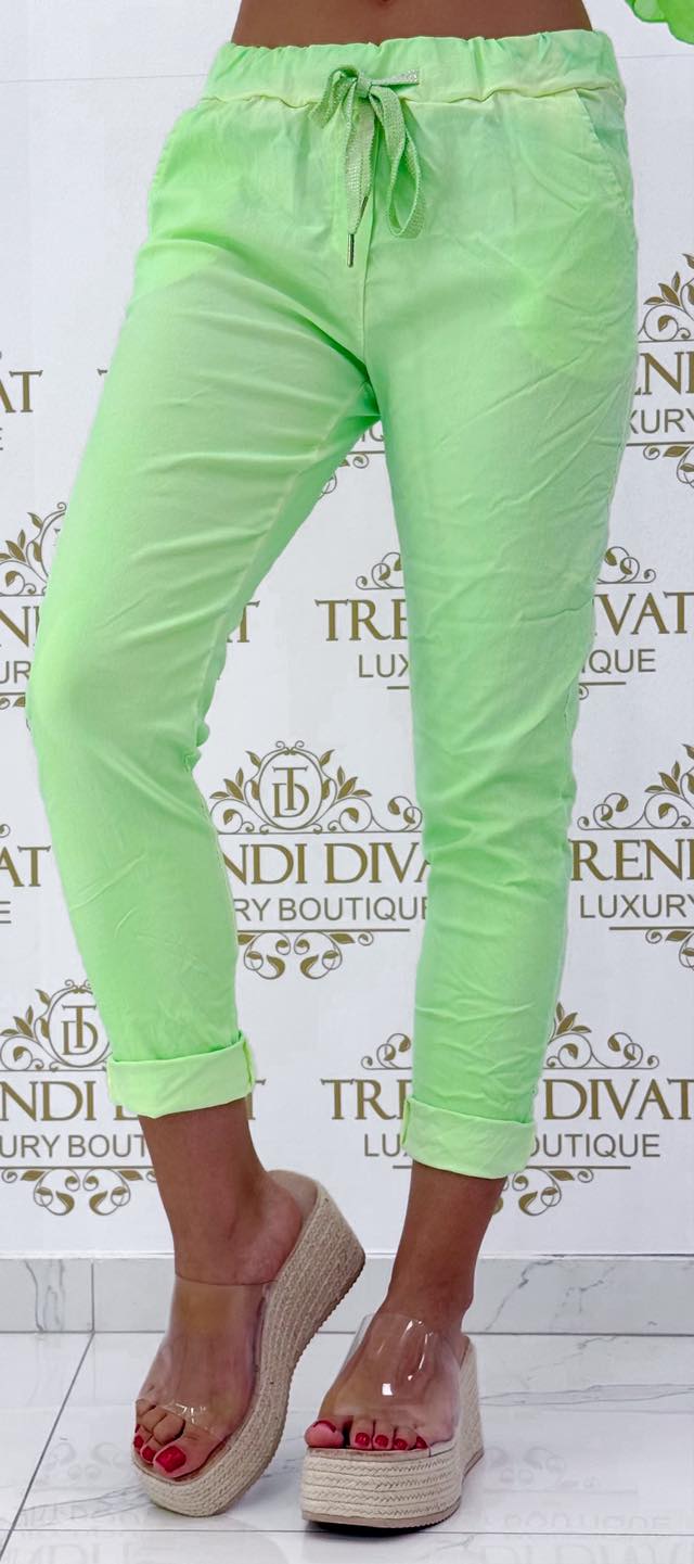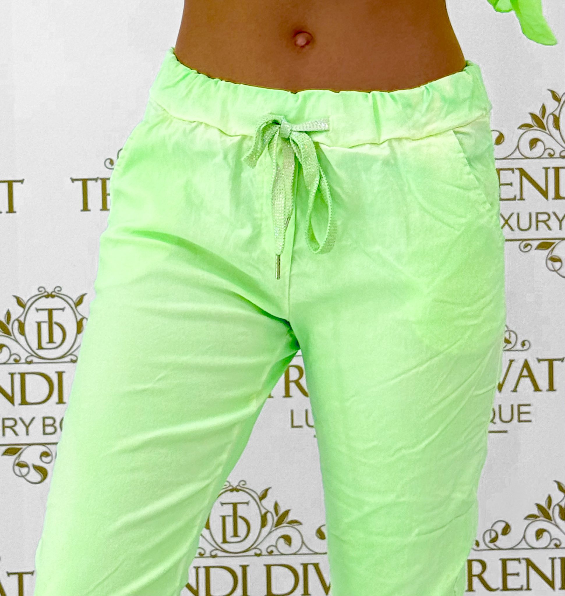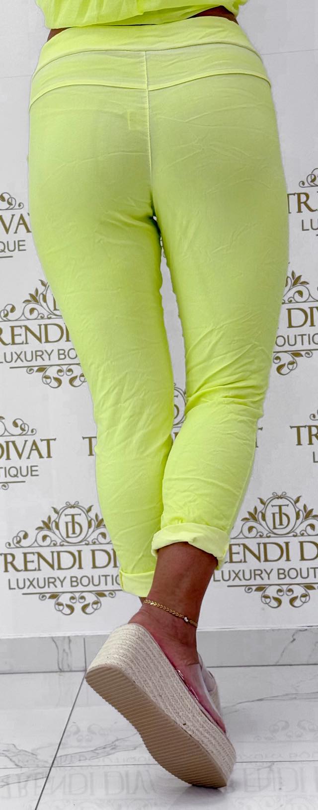 Elasztikus gyűrt vászon anyagú, neon színű nadrág