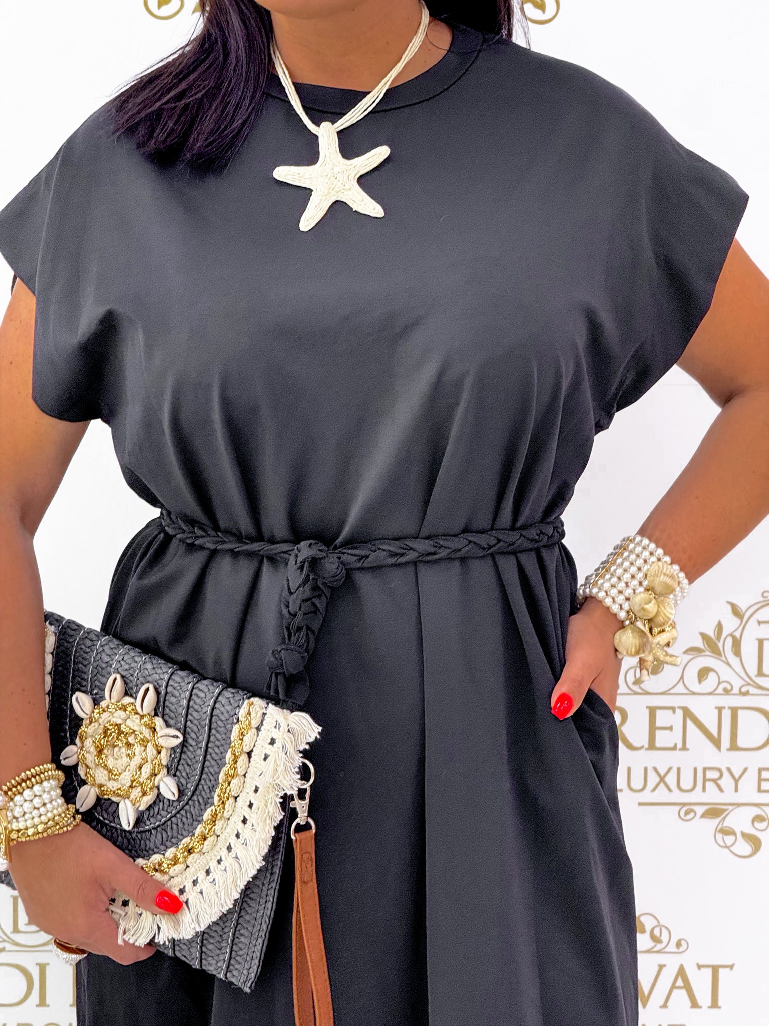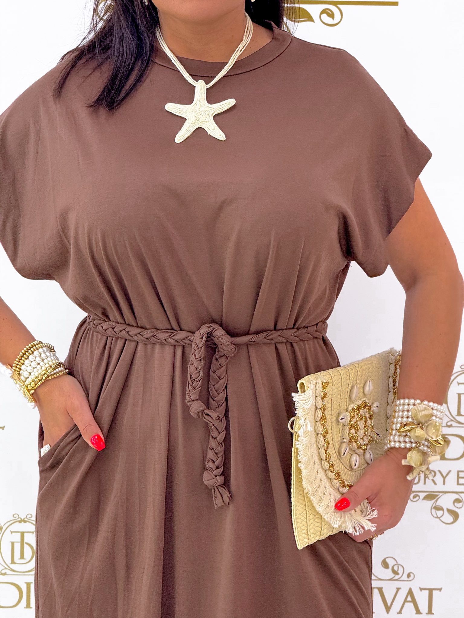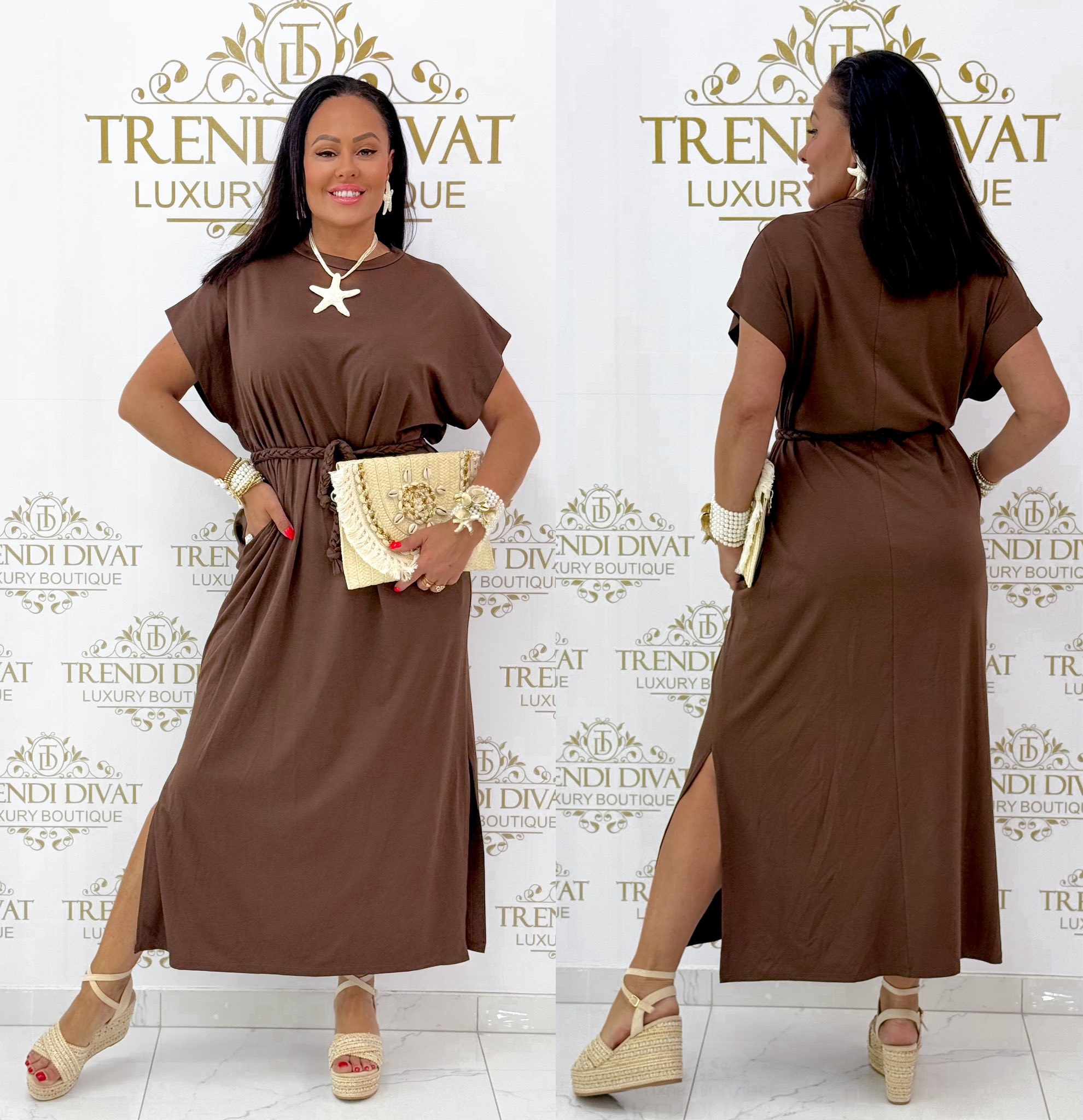 Oldalt felsliccelt, zsebes, maxi pólóruha, megkötős övvel