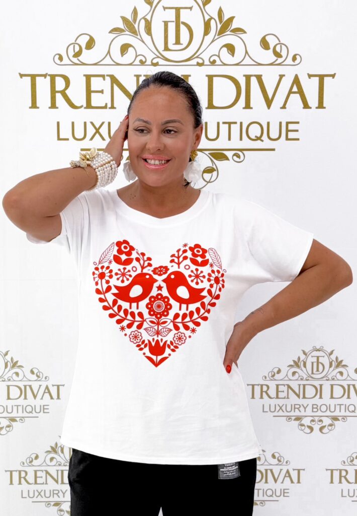 Laza fazonú, kövekkel díszített, fagylalt mintázatú felső