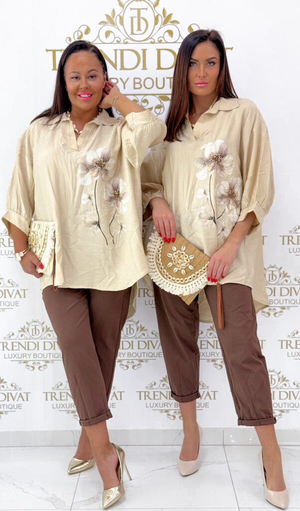 Plus size, „CHIC” feliratos, különleges mintázatú felső
